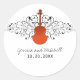 Perfect for a rock and roll themed wedding are these rocker chic Swirls Guitar Wedding Stickers in orange. This unique design features a striped guitar and flanked by cascades of elegant swirl flourishes. Easy to customize, simply add your wedding details in the text fields provided. Click on the "Customize It" button to find additional personalization options.