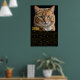 Bold and charming 2026 calendar featuring a close-up of an orange tabby cat with striking green eyes. Set against a dramatic black background, the feline portrait radiates warmth and personality. Below, all twelve months are arranged in a clean yellow grid, blending visual appeal with everyday functionality. Ideal for cat lovers, cozy home decor, and anyone who adores expressive feline companions.