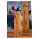 Orange tabby kitty cat spies Santa and his sleigh out the window being led by red nosed Rudolph and thinks it's the uncatchable red dot glowing out there cute and funny cat lovers MEDIUM sized Christmas holiday gift bag