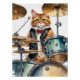 Orange Tabby Cat Rock Star Playing Drums Red Tie Poster