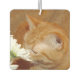 Orange tabby kitty cat takes a good smell of the daisies cat lovers hanging air freshener