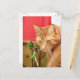 Orange tabby cat checks out the Christmas gifts and thinks "These must be mine" photo Christmas postcard