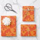 Orange Tangerine Flowers on Mid Century Scallop Wrapping Paper Sheet