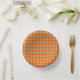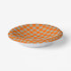 Orange Taupe Checker Diamond Pattern Paper Plate