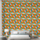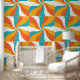Orange, Teal and White retro colours with a vintage vibe abstract pattern stick and peel wallpaper.