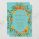 Orange Teal Aqua Peony Rose Floral Wedding Invitation