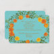Orange & Teal Aqua Peony Rose Information Invitation