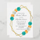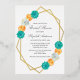 Orange ranunculus, white rose and teal floral bridal shower design on a geometric frame