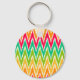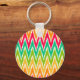 Orange Teal Ikat Chevron Zig Zag Stripes Pattern Keychain