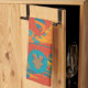 These orange and teal towels will provide a pop of colour to your Thanksgiving day festivities. This design features an artistic mix of oranges and teals swirled together along with a colourful turkey. Decorate your kitchen for the holiday.