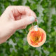 This lovely floral keychain features a beautiful photograph of an orange tulip in full bloom. The photo was taken using macro photography to really bring out the subtle shades of orange in this flower and the fine detail of its petals. The flower has been cut from the photo and put on a pale orange background.