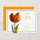 The text and background colour on this orange tulip wedding reply or RSVP card is fully customizable. You can change the text using the personalize option. For more extensive changes to the card, including changing the background colour, font, font colour, or text layout, choose the customize option. This is a great reply card for a spring, summer, or fall wedding with a tulip theme. Simple, pretty, and cheerful. This invitation is currently customized as a wedding reply card, but would also work great as an invitation for a bridal shower, special birthday, anniversary, or garden party. All you need to do is change the wording. Also, with changes to the text, you can make this a reception, direction, and/or accommodation card. Check out the matching wedding invitation shown below.