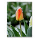 A passing storm deposits snowy slush on the folded petals of a beautiful orange tulip. Note that this card may be customized with your own personal inscription.