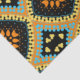 Seamless decorative pattern featuring geometric shapes in orange, yellow, turquoise and black.