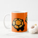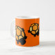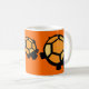 mug is decorated with orange and black turtles with a orange background