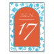 Orange Verona Sunset Blue Flowers Wedding Table Number