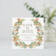 Sophistiquée et rustique, cette invitation à la photo botanique à l'état neuf présente un design boho élégant avec une couronne de fleur sauvage lavande violette.