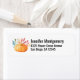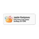 Return address labels with a watercolor illustration of an orange pumpkin decorated with colourful fall leaves and sprigs.