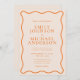 The back of the card is a solid single color for a clean, modern finish. Fully customizable with names, wedding date, venue details, and wording. Perfect for couples looking for a modern wedding invitation with a wavy frame and warm orange tones.