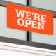 Let the World Know Your Business is Now Open! Capture attention with our eye catching 'We're Open' banner sign. Tailor a unique message using customizable text. Adjust colours in the design to align with your brand's identity.