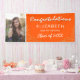 Celebrate graduation in style with our Personalized Graduation Party Banner! The banner boasts a customizable school colours backdrop, a dashing photo of the graduate embellished with a sparkling layer of glitter. With the word 'congratulations' scripted in a shadow script, along with the graduate's name, the school, and class year, this banner is the perfect centerpiece to any celebration. Change the background from vibrant orange to any colour that matches your theme for a truly personalized touch!