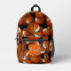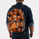 This cool basketball backpack features a random pattern of varied size basketballs turned every which way on a black background - each of the basketballs in the pattern has two recolored panels--one orange and one white - customize with the athlete's name & jersey number - by katz_d_zynes