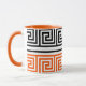 Orange and Black Greek Key Fret Geometric Seamless Repeat Pattern Design On White Background