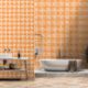 Orange White Chequered Diamond Pattern Wallpaper