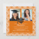 Start off you event right with our trendy white and Orange damask photo graduation invitation. Perfect graduation invitation for a high school graduation or college graduation. Just fill in your information add your photo and you're all set to go. Visit our shop at www.celebrateitgraduations.com for a large assortment of graduation invitations!