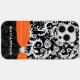 Orange & White Damask Printed Faux Rhinestone Case-Mate iPhone Case