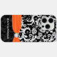 Orange & White Damask Printed Faux Rhinestone Case-Mate iPhone Case