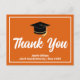 This modern orange and white custom graduation thank you postcard features classy handwritten thanks above your high school or college name for the class of 2025. Customize with your name under the black grad cap for great personalized graduate thank you postcards.