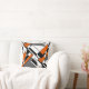 Orange White Grey Black Abstract Angular Art Motif Throw Pillow