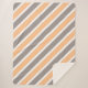 Modern sherpa blanket for girls bedroom features diagonal striped pattern in orange, grey, and white.
