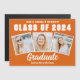 This trendy orange and white custom senior senior portrait photo collage graduate announcement magnet card features varsity letters for the Class of 2025 under your college or high school name. Customize these magnets with your favourite 3 graduation photographs.