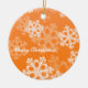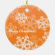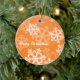 Orange White Snowflakes Minimalist Christmas Ceramic Ornament