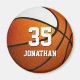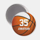 This team colours basketball themed magnet for boys or girls features the realistic image of a basketball that has two recolored panels--one orange and one white - easily personalize with player name & jersey number - by katz_d_zynes