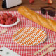 Orange White Vertical Stripes Pattern Paper Plate