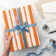 Orange White Vertical Stripes Pattern Wrapping Paper