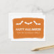 Trendy and fun Watercolor Bats Halloween Postcard with an orange watercolor look background and three whimsical little white bats. This simple and modern card can be easily customized with your own Halloween greeting. Find more customization options by clicking Customize It.