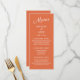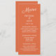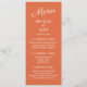 Orange menu with white text for the rehearsal dinner, wedding reception, or any other event you are planning. The background and text colours are fully customizable with Zazzle's design tool, so create your menu to match your own event.