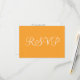 Wedding RSVP with pretty fresh fruit inspired orange solid colour background and white script on front. Personalize back in black text on white background with your special occasion text on these modern invitations lovely for a summer wedding. Orange Hex code FFA62F. Click to Personalize and edit font style or colours. Original Designs by TamiraZDesigns.