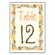 Orange, yellow floral border wedding table number