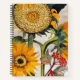 Orange-yellow sunflowers painted at various angles, with one going to seed, an artistic idea for any flower lover gardener. > Gorgeous print of a sunflower watercolor painting by artist, Harriet Brock. > Customizable: Add your own custom name or text.