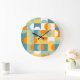 Orange Yellow Teal Blue Seafoam Retro Art Pattern Large Clock