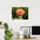 This beautiful print features a detailed photograph of a pretty orange Zinnia flower. The photograph was taken using macro photography and shows the delicate beauty of the orange petals and yellow centre of this beautiful flower.