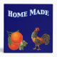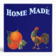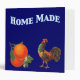 A custom recipe binder template with vintage kitchen crate label art of oranges with small blossoms and a colourful crowing rooster. The top reads Home Made in custom letters in white with a blue outline Click Customize It to add or subtract text, change lettering style, background colours, even save your custom design for later!