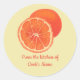 Ces autocollants personnalisées sur le couvercle présentent une peinture d'un tout et aussi une moitié découpée d'orange. Les oranges sont imprimées au-dessus du nom du cuisinier. Ces autocollants de fruits sont faciles à personnaliser à l'aide du formulaire modèle. Merci pour faire du shopping CherylsArt sur Zazzle.