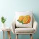 This gorgeous decorative pillow, featuring two whole oranges and one cut half orange with three orange leaves on a transparent background (white used in sample) or custom background colour, is the perfect accessory to cozy up any space and is great for adding colour to your kitchen or living room decor.