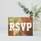 This RSVP card design features a pattern that's like a orange/yellow mist or haze. The address and RSVP form are customizable.